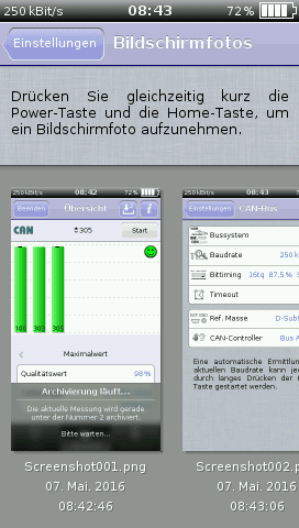 Das CANtouch kann bis zu 100 Bildschirmfotos pro Projekt speichern.