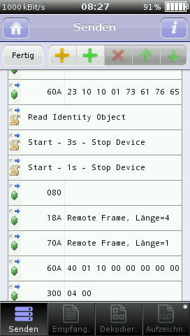 Der umfangreiche Protokollmonitor kann einzelne Telegramme oder Telegram-Sequenzen senden.
