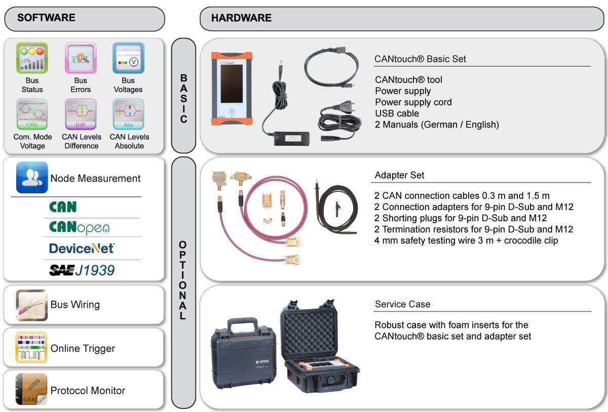Das CANtouch ist ein batteriebetriebenes Handheld-Diagnosegerät zur physikalischen und logischen Analyse von CAN-Anlagen. Seine moderne Touchbedienung ermöglicht eine intuitive und effiziente Handhabung ohne zusätzlichen PC. Als Weiterentwicklung des CAN-Bus-Testers 2 verfügt es nicht nur über dessen Funktionalität, sondern bietet darüber hinaus zusätzliche Messfunktionen. Ein vereinfachtes Bewertungsverfahren nach dem Ampelprinzip und Smileys unterstützt Sie bei der schnellen Bewertung der Messergebnisse. Die Funktionen können jederzeit durch den Erwerb von Lizenzen freigeschaltet werden.