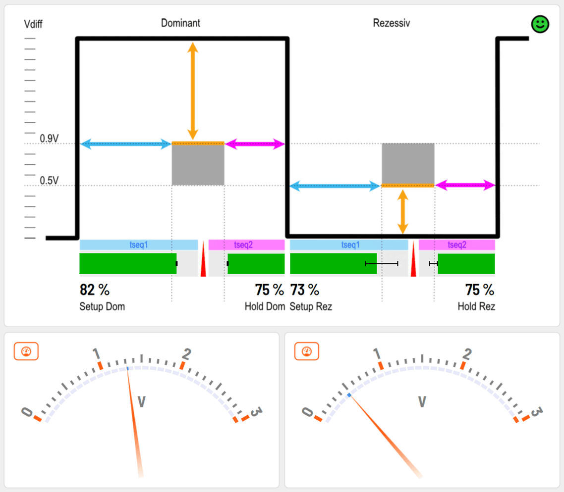 | Bus-Analyse | Überwacht Busstatus, Fehlertelegramme, Spannungen, Gleichtakt und CAN-Pegel in Echtzeit – für zuverlässige Netzwerkdiagnose. |
