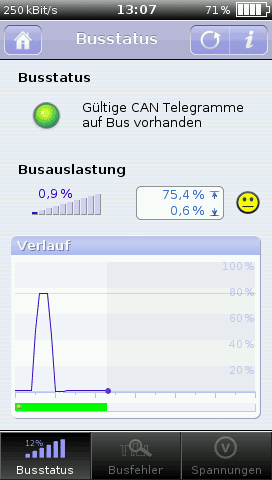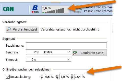 Die Busauslastung wird im CAN-Bus Tester 2, im CANtouch und im CANobserver direkt vom FPGA ausgezählt.
